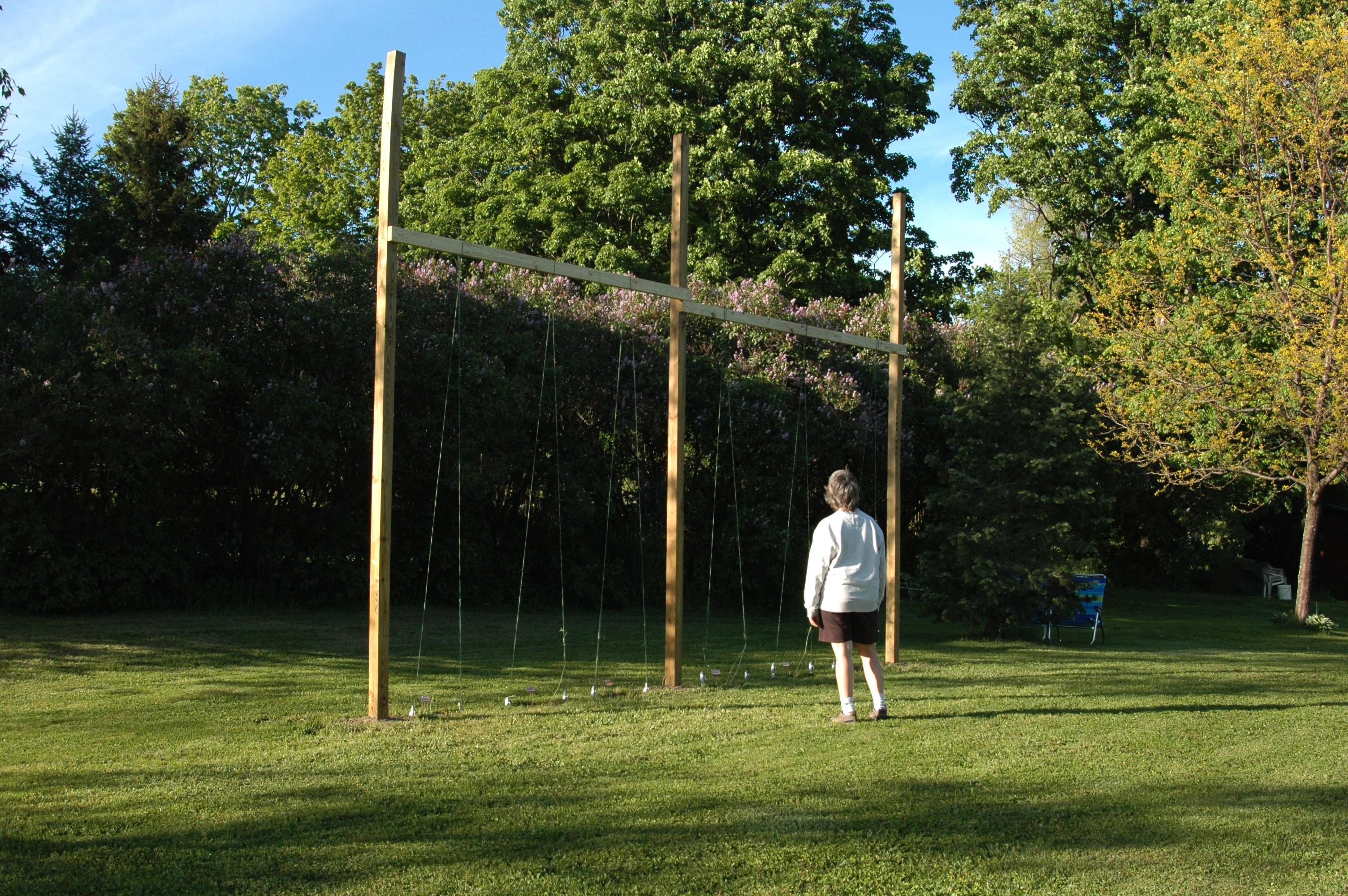 Meanwhile, on the hop trellis front, here’s a picture of HollyCornblog standing in front of the recently-installed trellis. This gives a good sense of how big it is. I was actually rather shocked! When I wrote yesterday about the Eagles doing some field goal practice there, I thought I was kidding – but apparently I was not!