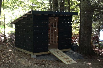 I had an e-mail from HollyCornblog with a photo of the completed shed. (Now you can see what I’ll be filing with wood, come November.) Great work, you guys! They are off to the Adirondacks for some kayaking today.
