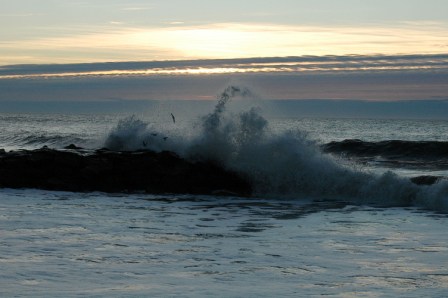 Here’s hoping you had a nice holiday … as the sun rises on December 26, 2008. I thought I’d share a couple of photos that HollyCornblog sent along from Cape May, New Jersey. Here’s sunrise on the beach (yesterday). Check out the gulls silhouetted against the waves.