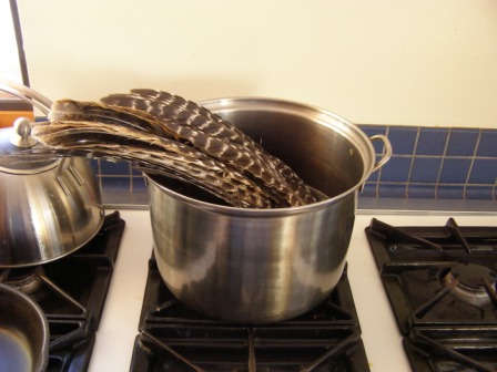 Anyway – one housemate, who shall remain anonymous, was quite enamored of the feathers, as she sadly bagged the carcas last night.