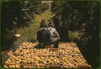 Then there’s Captured America in Color … photos taken by photographers of the Farm Security Administration/Office of War Information between 1939 and 1943. I found their every-day-ness absolutely fascinating! Check out the photo with the peach crates on a wagon heading to market. It’s #24 and the caption reads: “Hauling crates of peaches from the orchard to the shipping shed. Delta County, Colorado, September 1940. Reproduction from color slide. Photo by Russell Lee. Prints and Photographs Division, Library of Congress.”