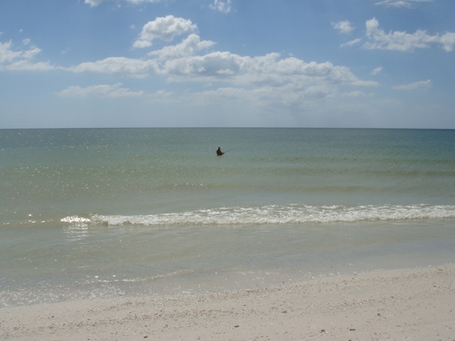 here’s another photo … this one of CharlieHopbrew surf fishing … waaaaaay out there in the Gulf.