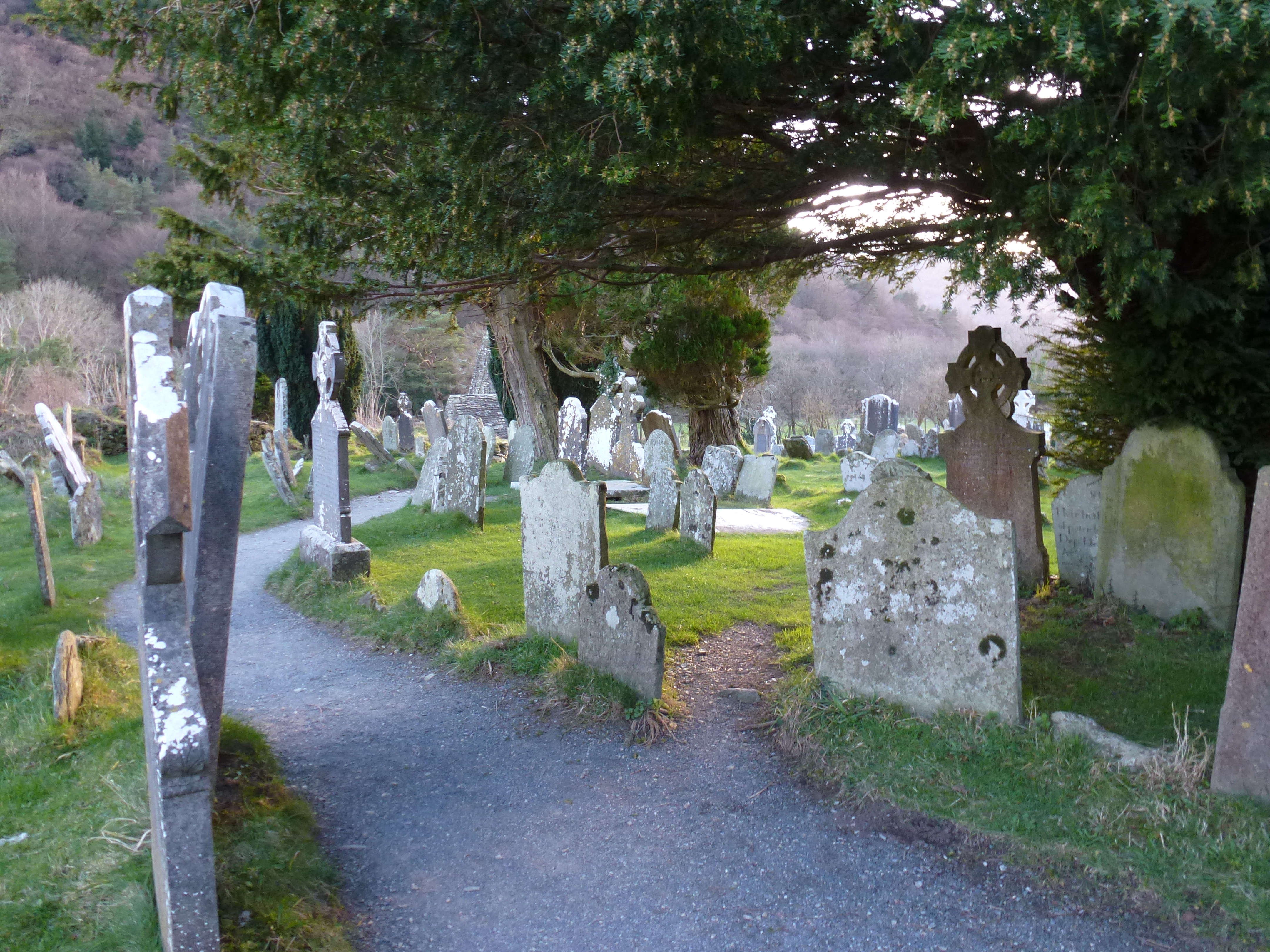 St. Kevin went there seeking solitude to pray … but his apparently exceedingly charismatic spirituality led to the founding of a monastic settlement there, at the foot of two lakes in a spectacular valley. It’s definitely a place to explore again sometime! I highly recommend doing so when there’s a slant to the light!